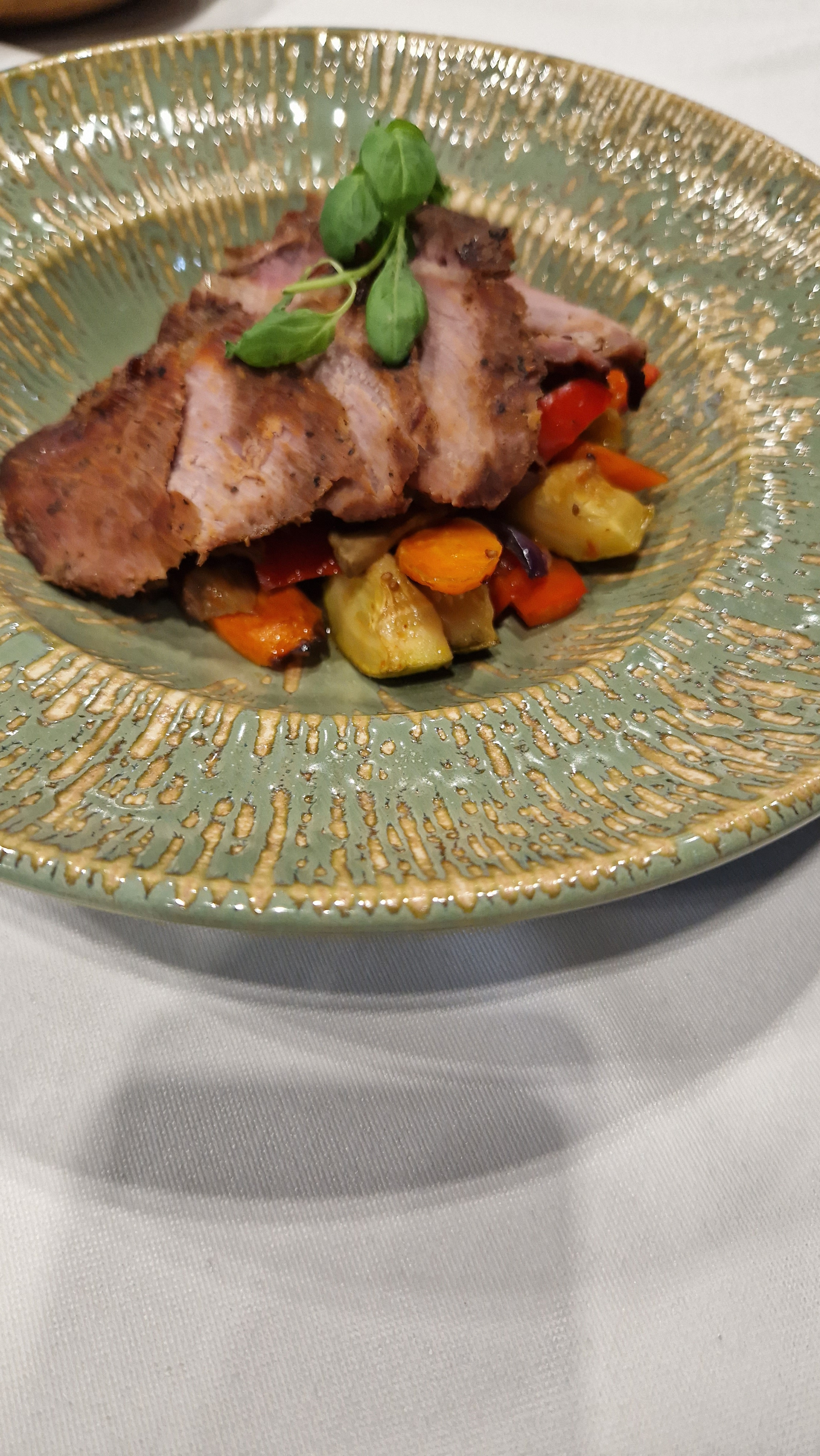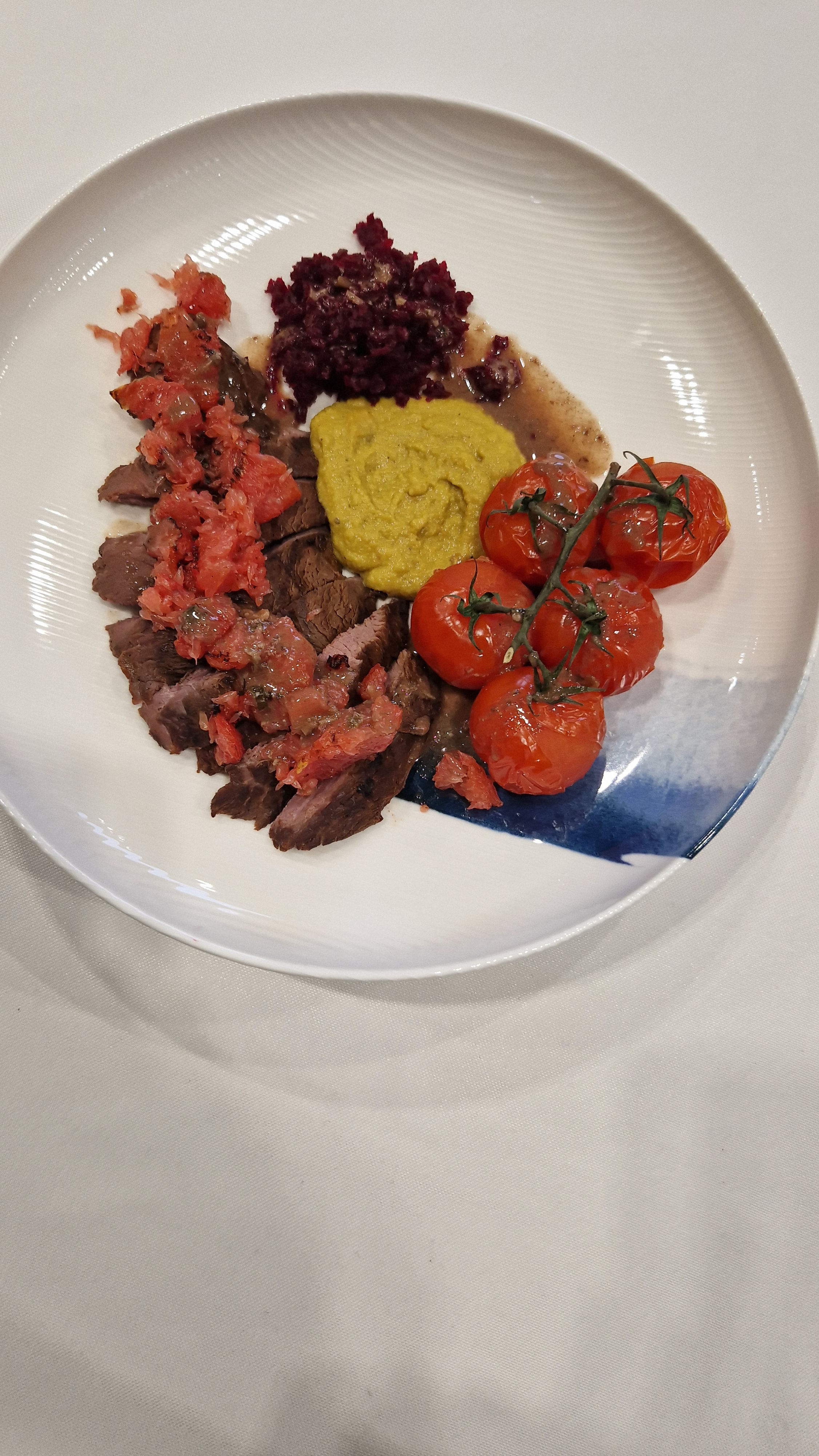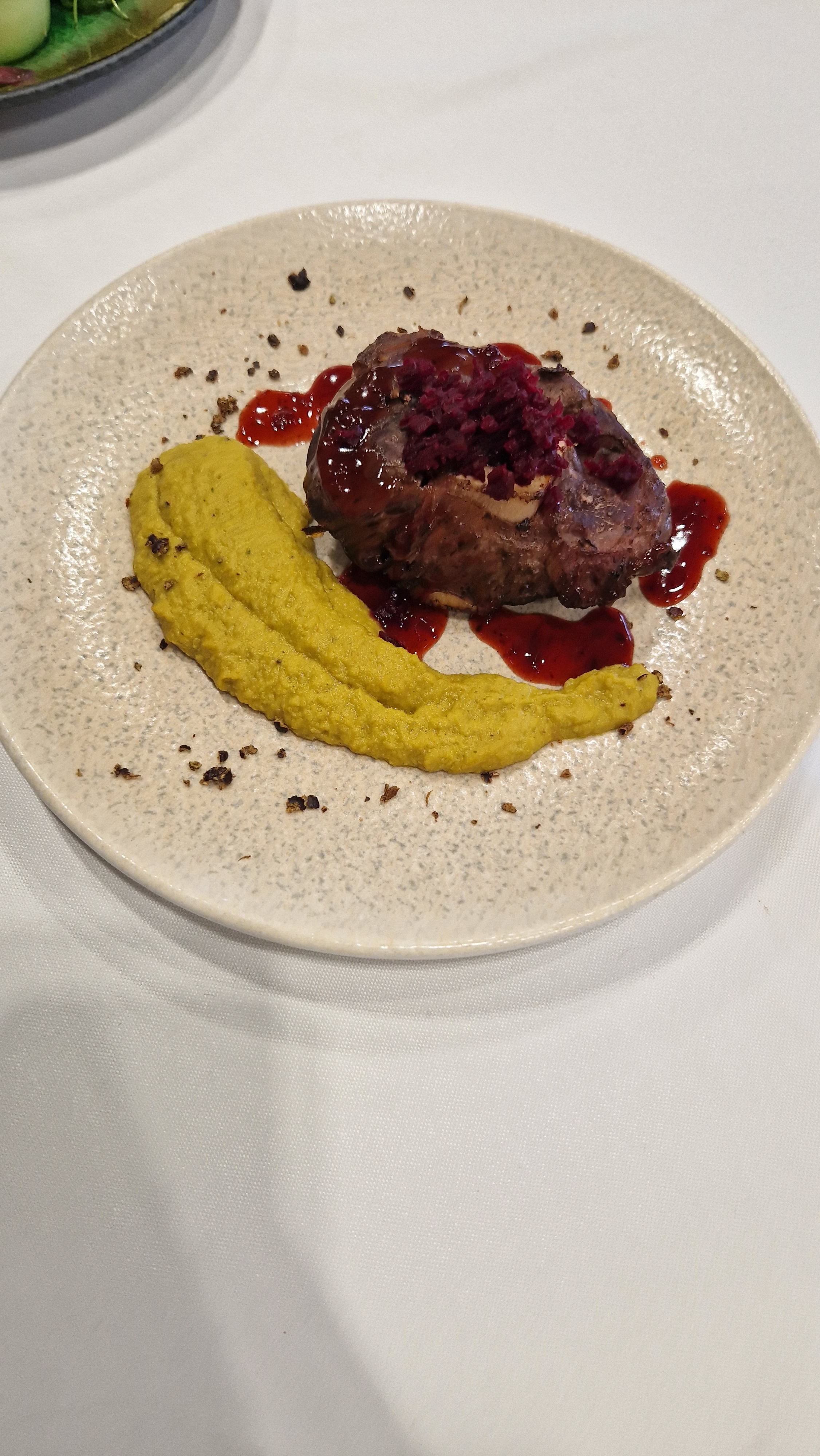 • Оссобуко лося с хумусом из овощей и икрой свекольной ферментированной.