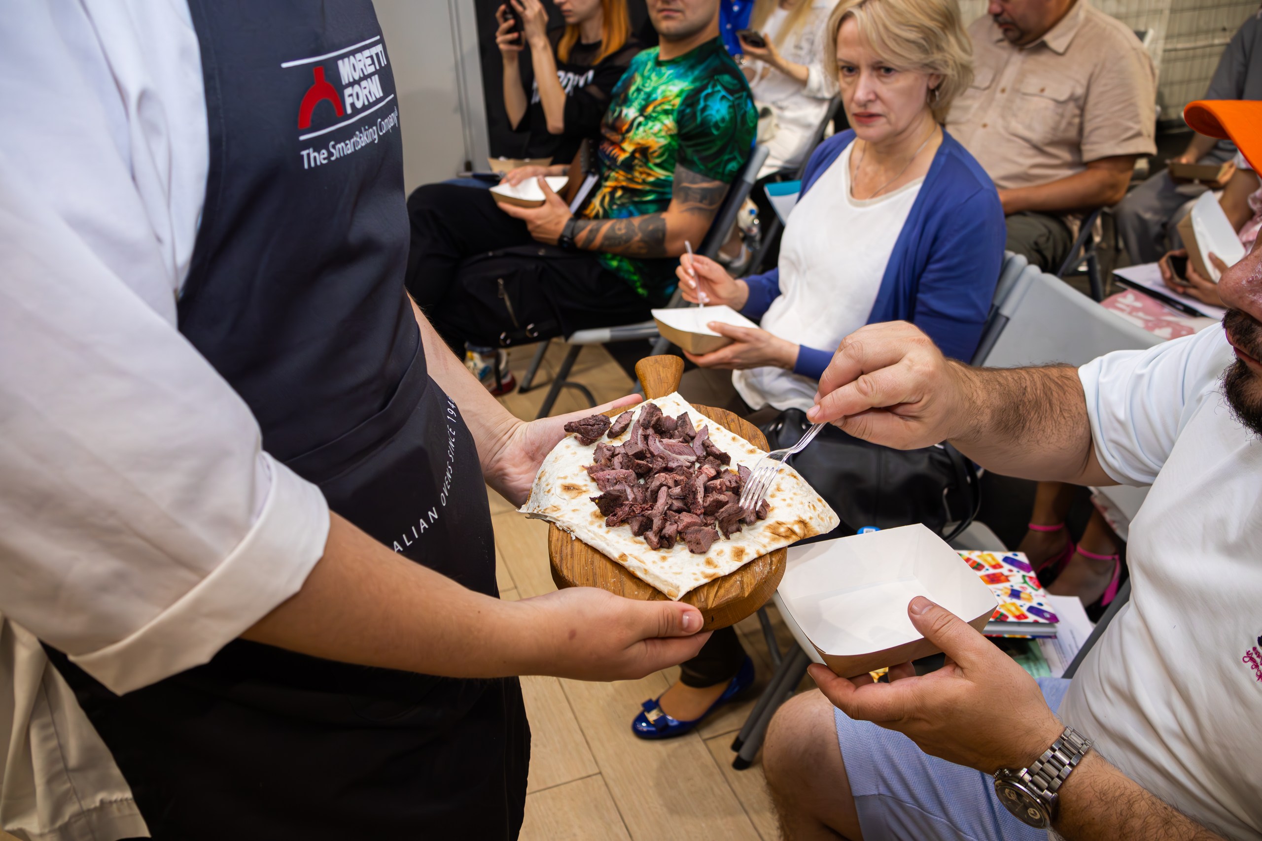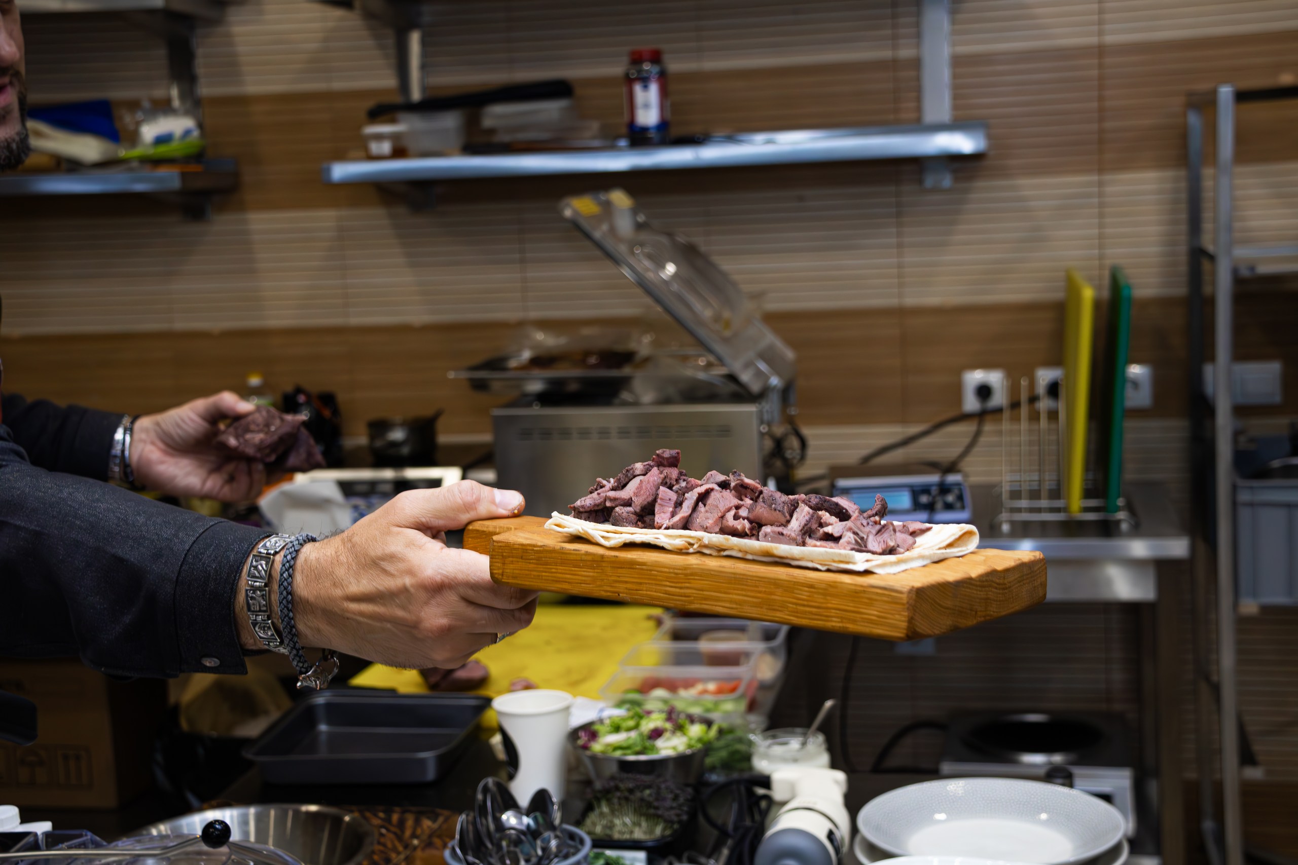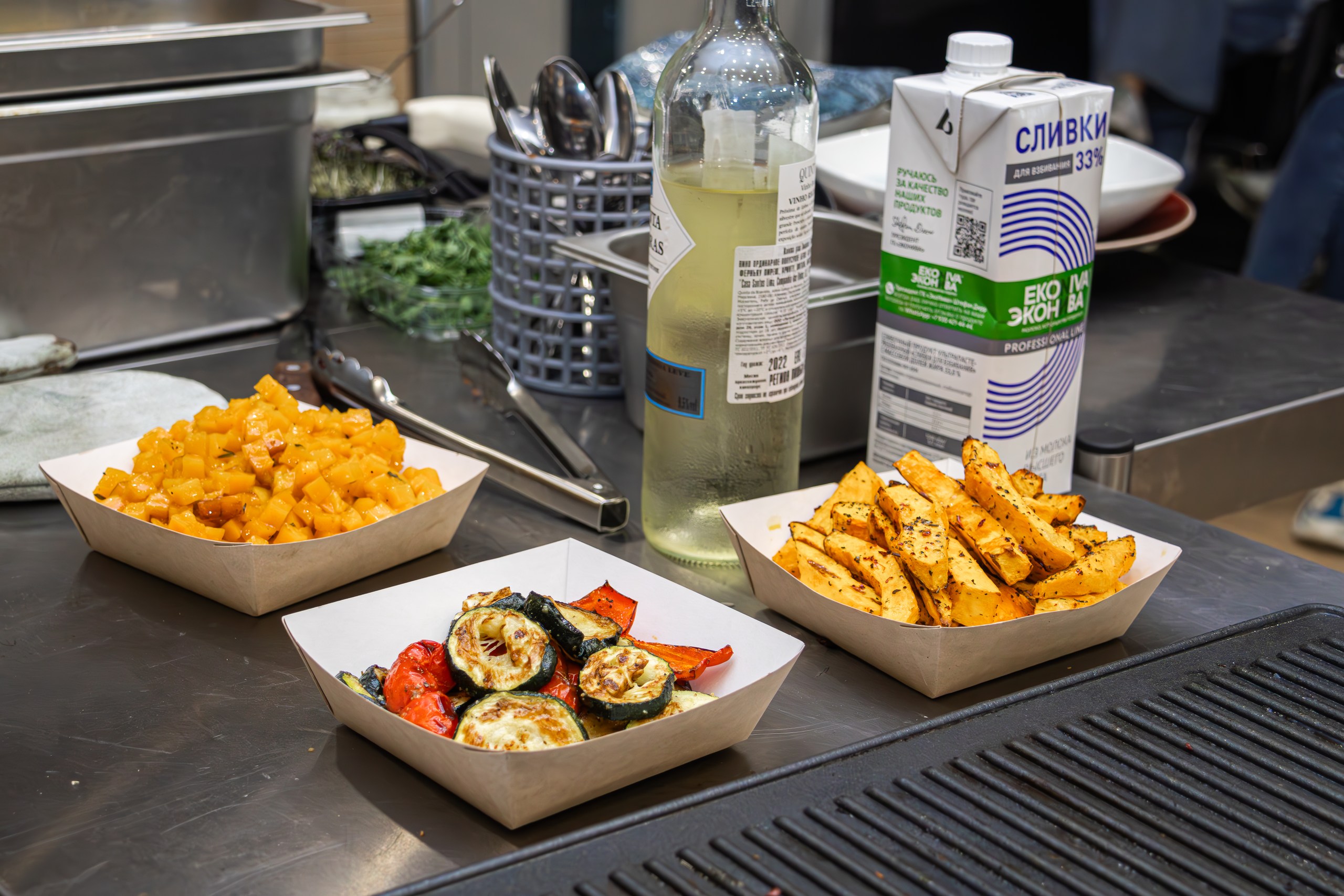 Шеф повара предложили участникам готовые решения по использованию дикого мяса в меню. Также на мастер-классе рассказали о технологии работы на оборудовании APACH. Каждый участник смог продегустировать готовые блюда.