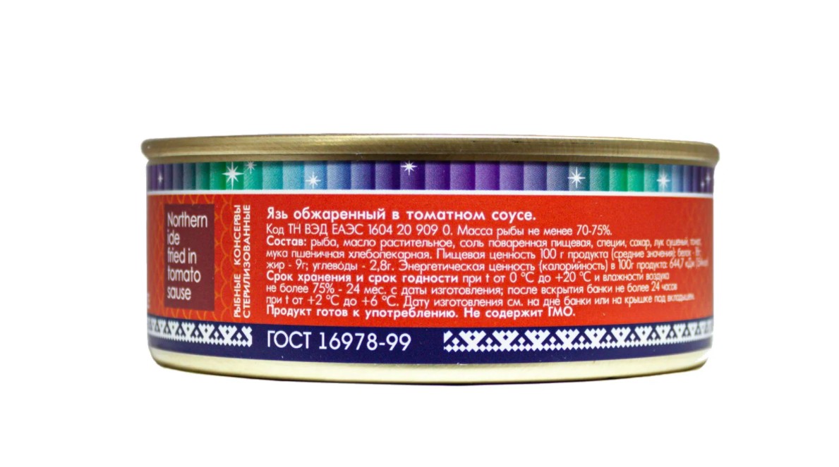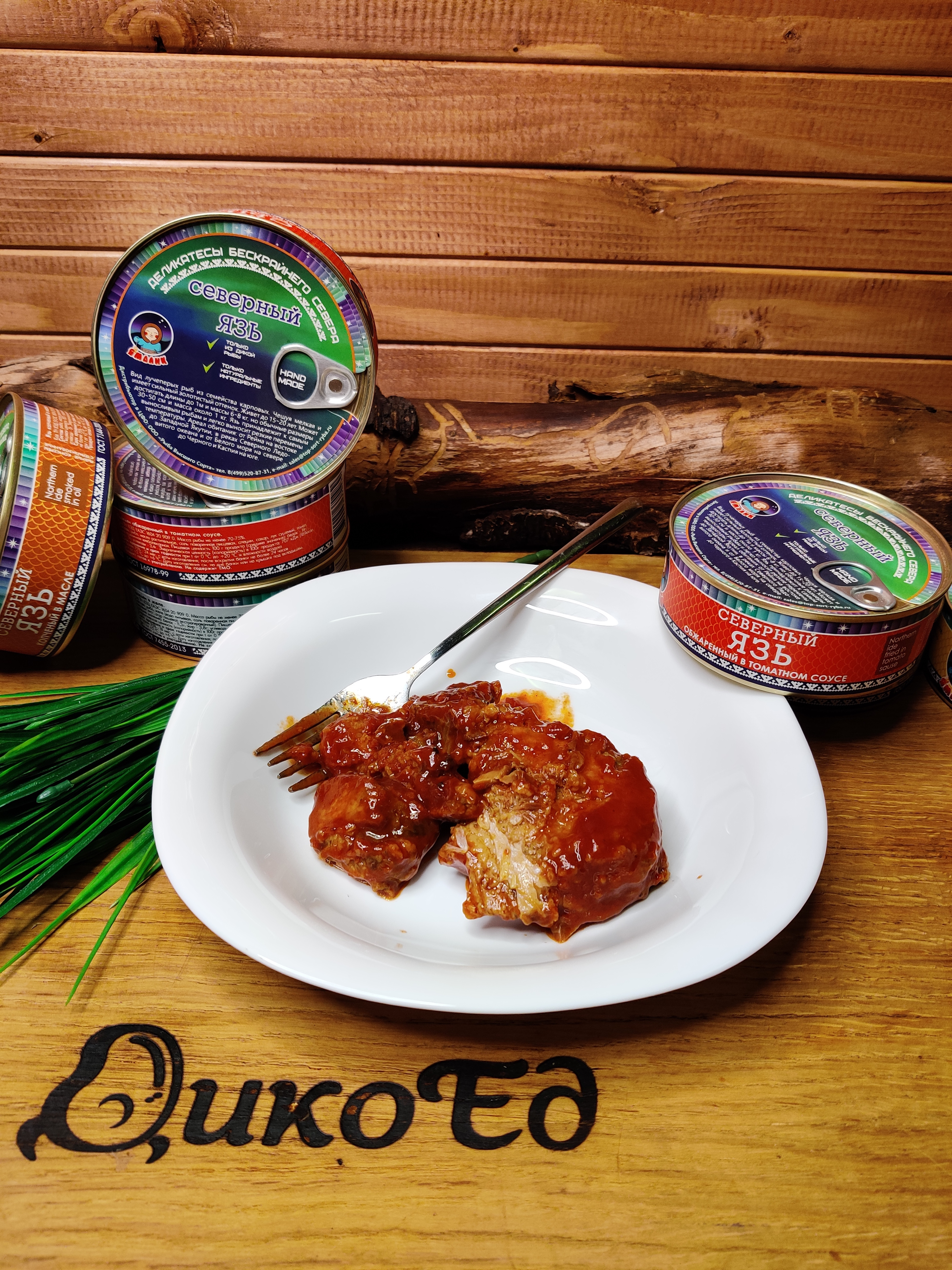 Язь, обжаренный в томатном соусе с вином и черносливом, понравится всем, кто знаком с кухней народов Сибири и северных районов страны. Консервированный деликатес приготовлен по передаваемым по наследству рецептам. Суховатое от природы мясо язя, обжаренное в растительном масле, становится мягким и нежным. Вино добавляет блюду капельку солнечного аромата винограда. Чернослив в сочетании с томатным соусом придают пикантность и сладкий вкус мясу рыбы. Гвоздика, кориандр и другие специи формируют вершину вкуса. Отведав язя в этом соусе, получаешь истинное наслаждение от продукции Севера.