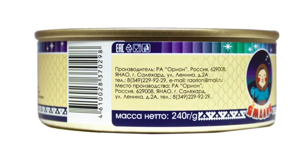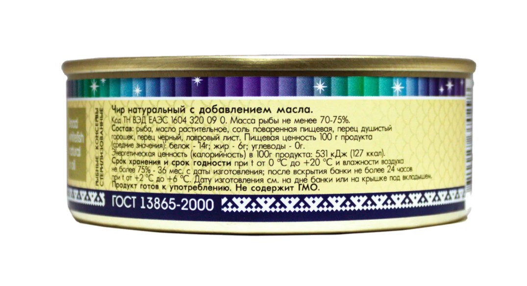Состав: рыба, масло, соль, перец, лавровый лист