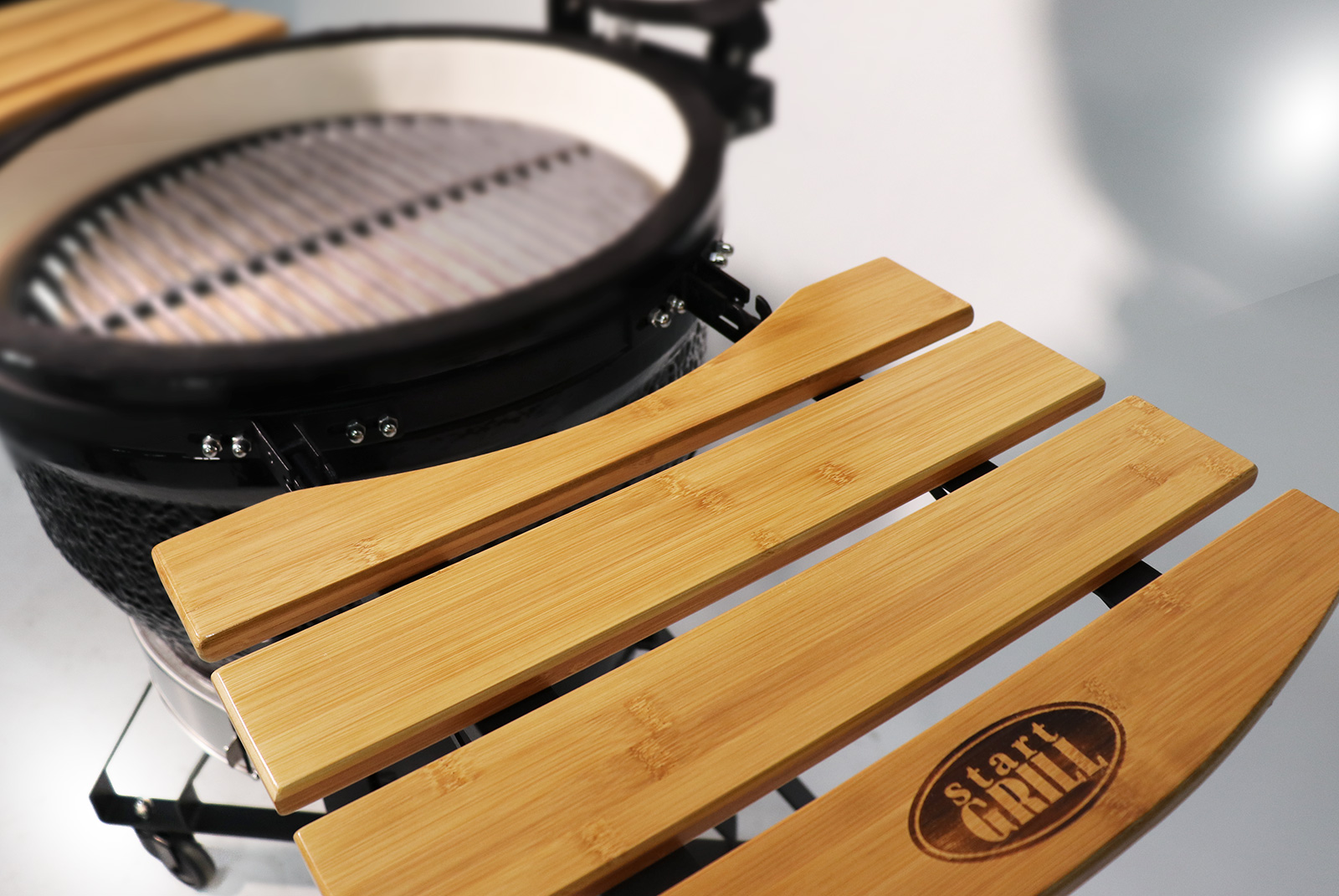 Материал, из которого сделан гриль, – высокопрочная керамика. Её главными характеристиками являются: экологичность, прочность, стойкость к перепадам температур. Любая приготовленная на гриле пища сохранит свой естественный вкус и аромат. Это может быть мясо, рыба, овощи, выпечка и копчёности. Термометр на крышке позволит контролировать температуру внутри печи, заслонки – регулировать огонь. Диаметр жарочной поверхности – 467 миллиметров – даёт возможность за один приём приготовить блюдо для всей семьи. Благодаря небольшим размерам аппарата, его легко установить в любом удобном уголке участка.