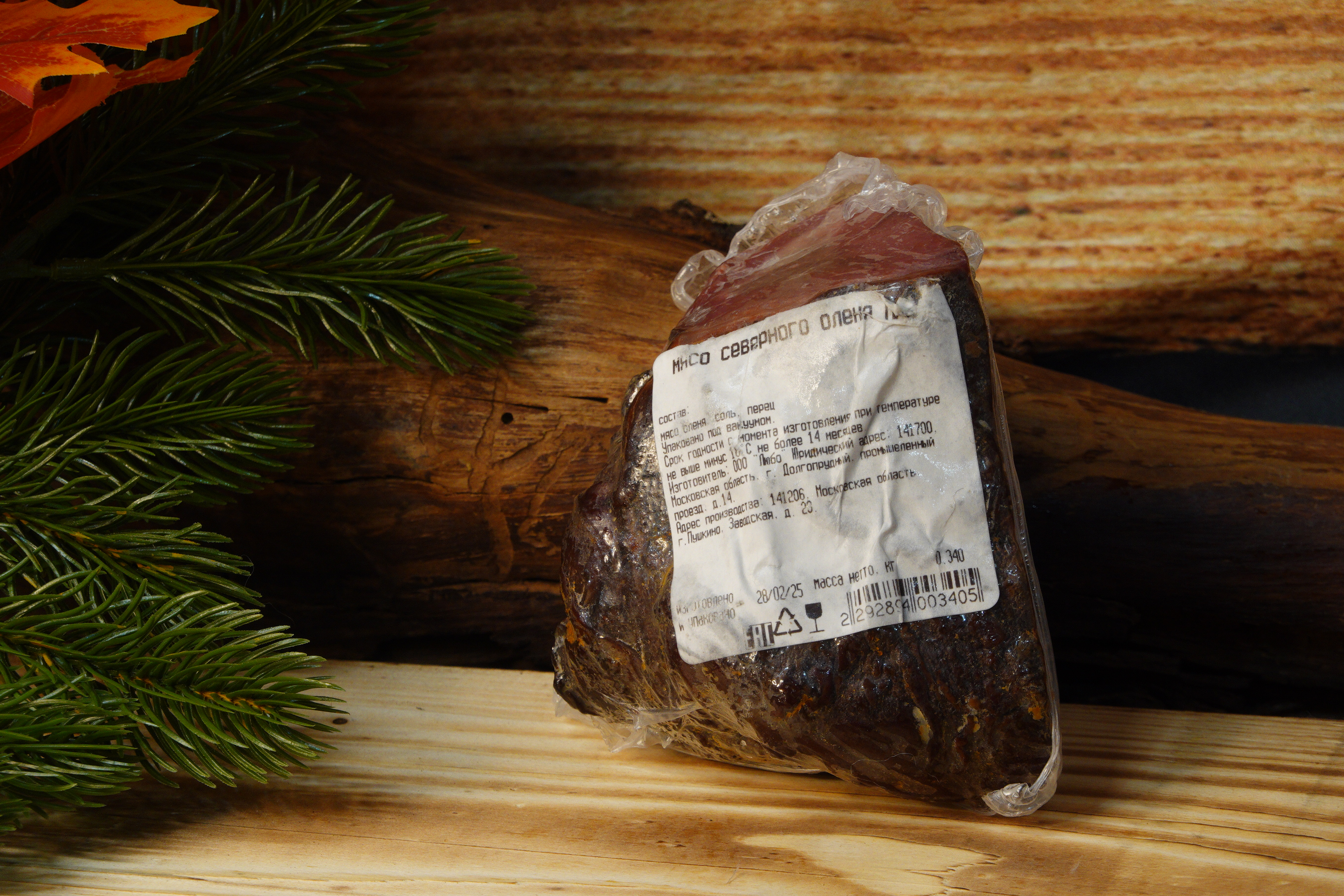 Состав: мясо северного оленя, нитритная посолочная смесь, специи